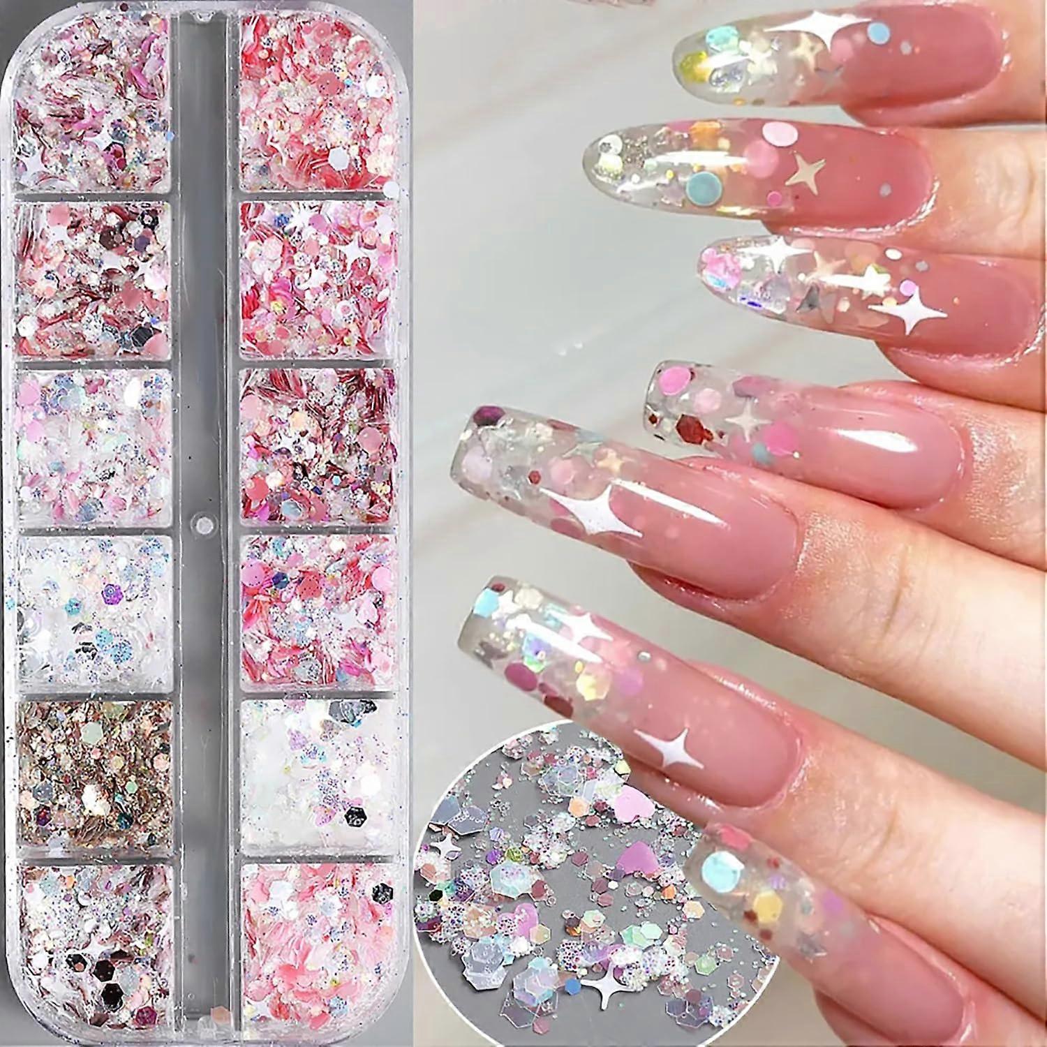 12 colors hexagon chunky glitter holographic craft stickers sequins heart nail art glitter mermaid powder flakes shiny charms star sequins