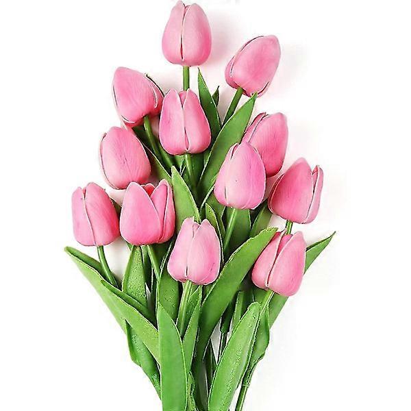 12-Pack Artificial Tulips Fake Flower Arrangements Bouquets for Home Office Wedding Decor Realistic Flowers Pink