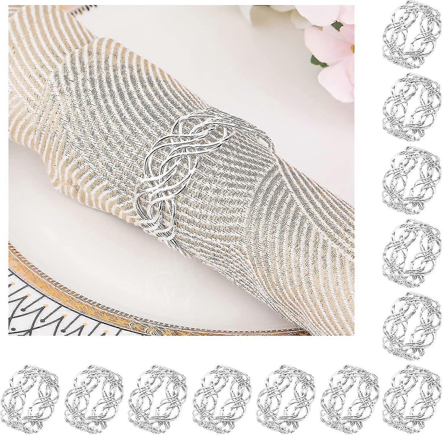 12-Pack Metallic Twined Napkin Rings, Serviette Holders for Weddings, Parties, Banquets, Silver