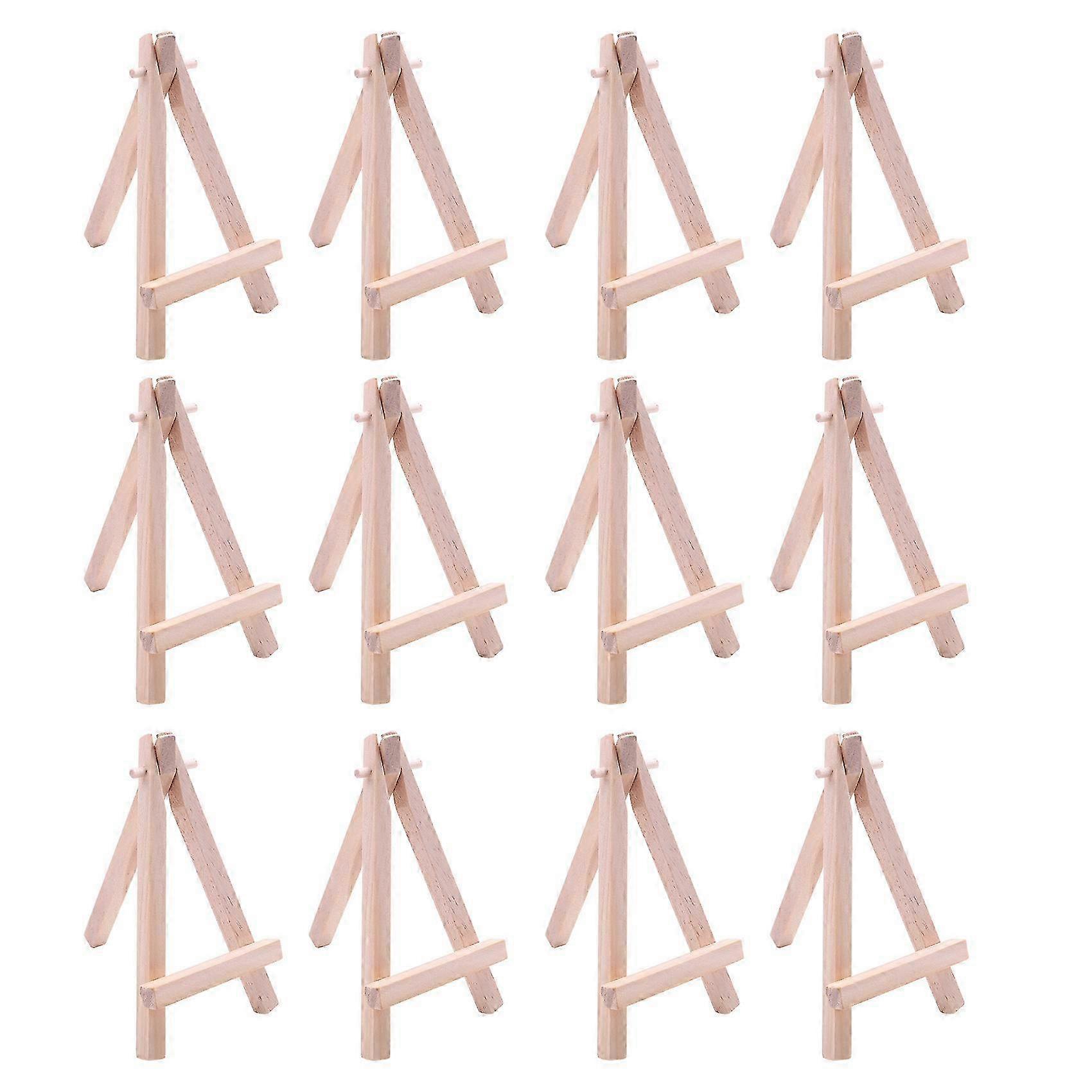 12 Pack 5-Inch Mini Wood Display Easels - Natural Wooden Tripod Holder Stands for Small Canvases
