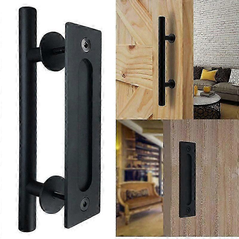 12" Heavy Duty Pull and Flush Door Handle Set in Black, Sliding Barn Door Handle - Fit Doors Up to 2 3/8''