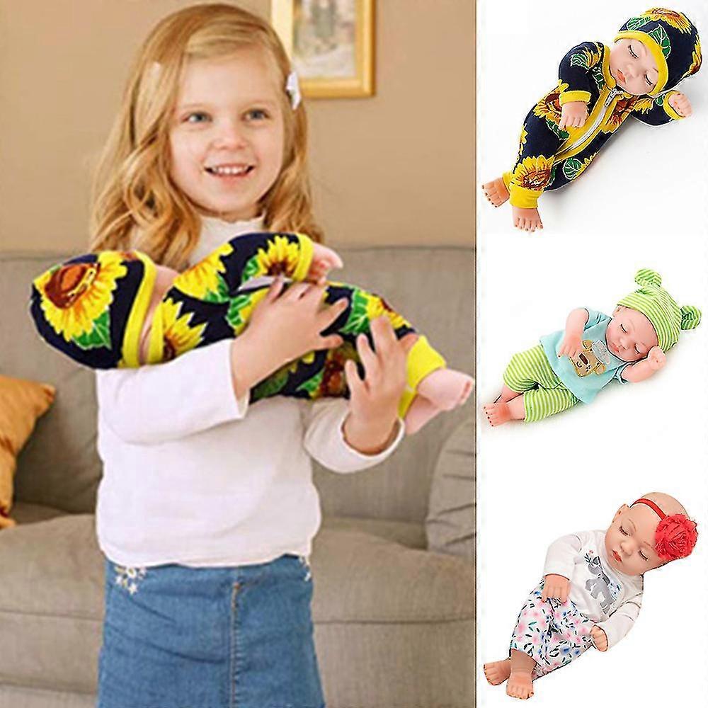12" Reborn Baby Dolls - Lifelike Girl Doll, Realistic Sleeping Newborn Doll with Clothes, Gifts for Toddler Kids Safety Comes First - When it comes to your little ones happiness, theres no room for compromise. This realistic baby doll is made with premium quality, highly durable soft vinyl, a special material which is 100% safe, skin-friendly, easy to clean and guaranteed to withstand the test of time Gorgeous Life-Like Design - She is a realistic baby figure with a cute face and a huggable body. This baby doll includes a 12-inch tall ultra-realistic design. Moveable hands lets you put it in sitting and lying position with ease. Desighed to Delight - Make playtime more fun and interesting with this lifelike baby doll. Would you like to make sure your toddler enjoys an interactive and educational playtime experience This reborn baby is the perfect choice She is a doll your child will play with for years to come. Package Included: 1 x Reborn Baby Dolls Note: 1. Due to the different monitor and light effect, the actual color of the item might be slightly different from the color showed on the pictures. Thank you 2. Please allow 1-3cm measuring deviation due to manual measurement. ( 1 inch = 2.54 cm )