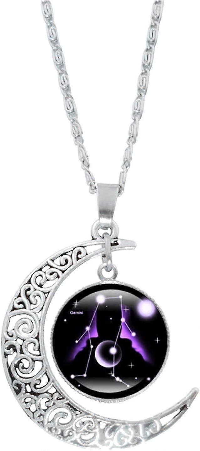 12 Constellation Moon Necklace Astrology Necklace Galaxy & Crescent Moon Glass Bead Pendant Necklace, Sterling Silver Jewelry Necklace, Ideal Jewelry