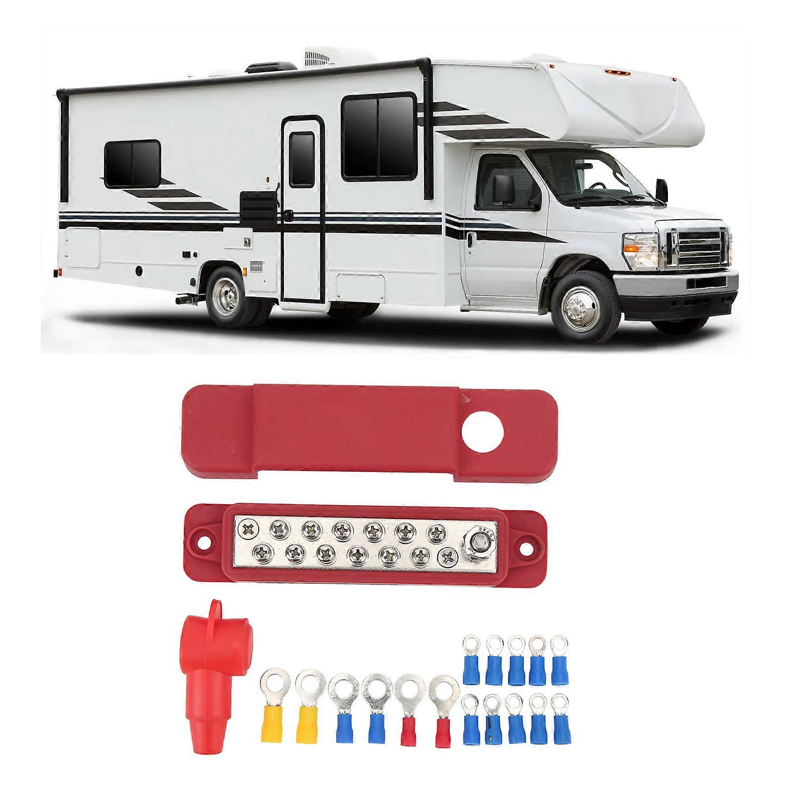 12 Terminal Distribution Block 180A Marine Supply Busbar with 16 Ring Terminal for Cars RVs Yachts Red