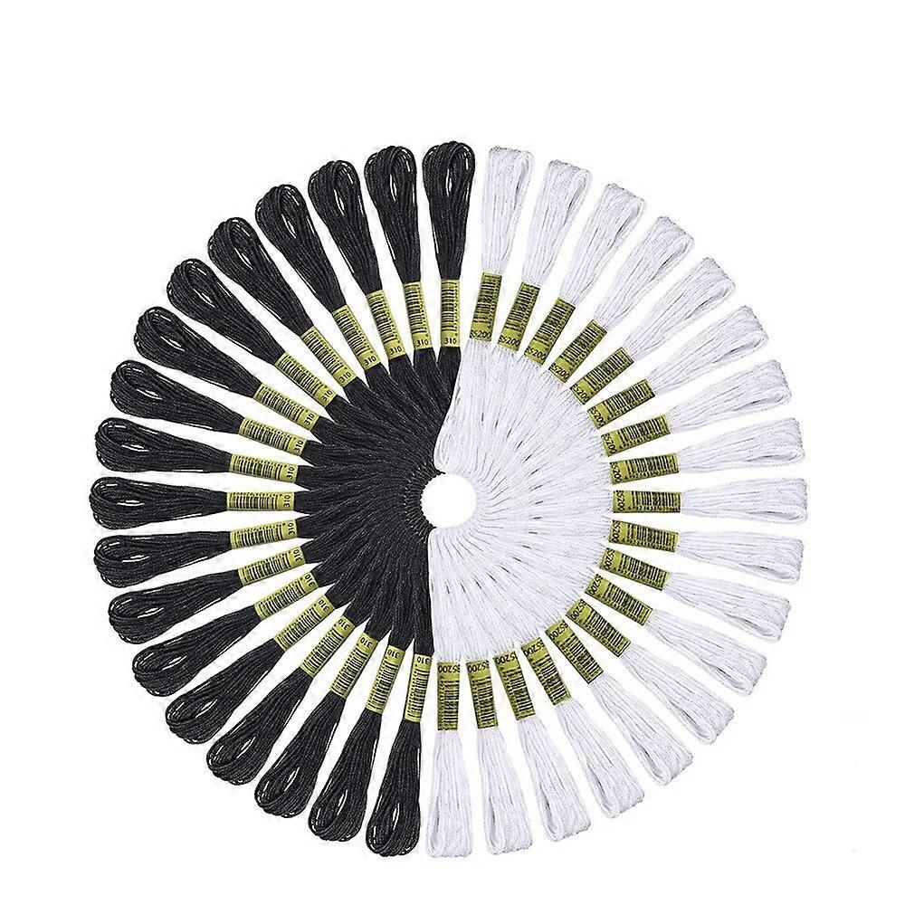 12/24Pcs Black and White Cross Stitch Thread Embroidery Floss Skeins Black Color Hand Sewing Threads DIY Craft Needlework