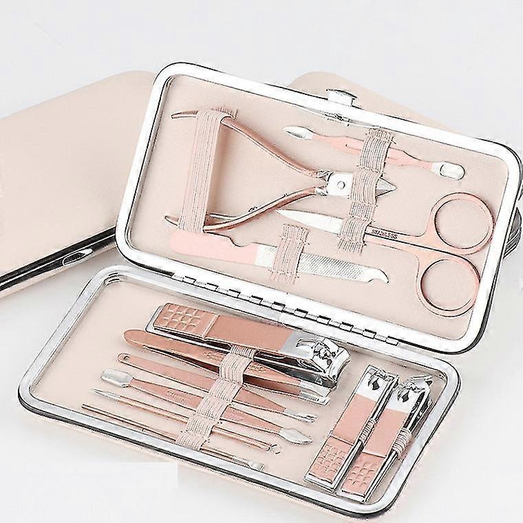 12 In 1 Nail Clippers And Beauty Tool Portable Set, Rose Gold Martensitic Stainless Steel Manicure Set With Pink Leather Bag