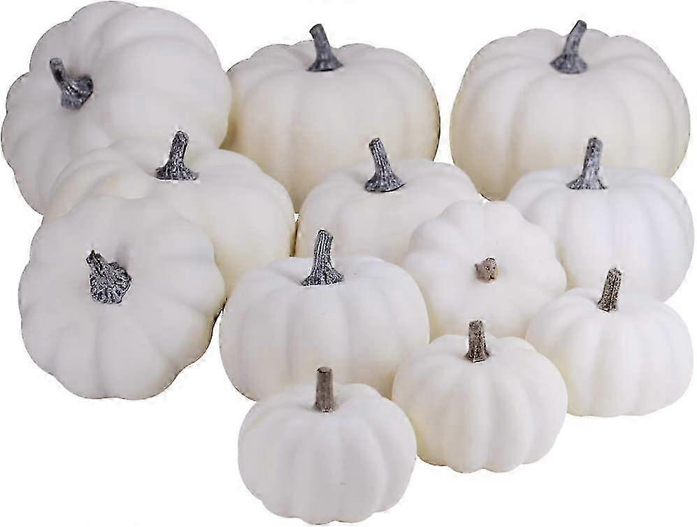 12 PCS Assorted Sizes Rustic Harvest White Artificial Pumpkins for Halloween, Fall Thanksgiving Decorating