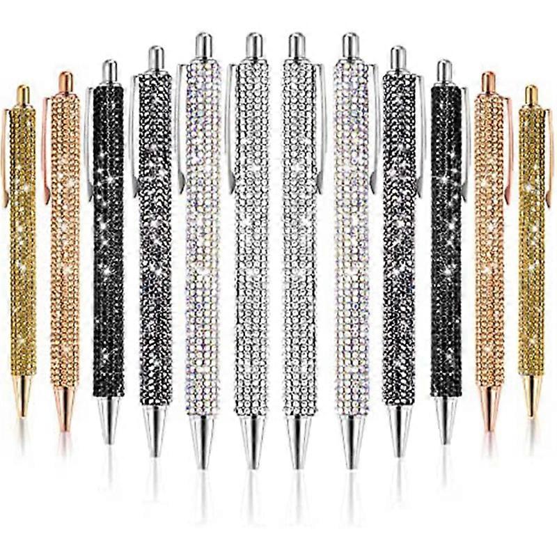 12 PCS Bling Pen Bulk Metal Ballpoint Pen Diamond Pen Crystal Retractable Black Ink 0.7Mm Ballpoint Pen 6 Colors