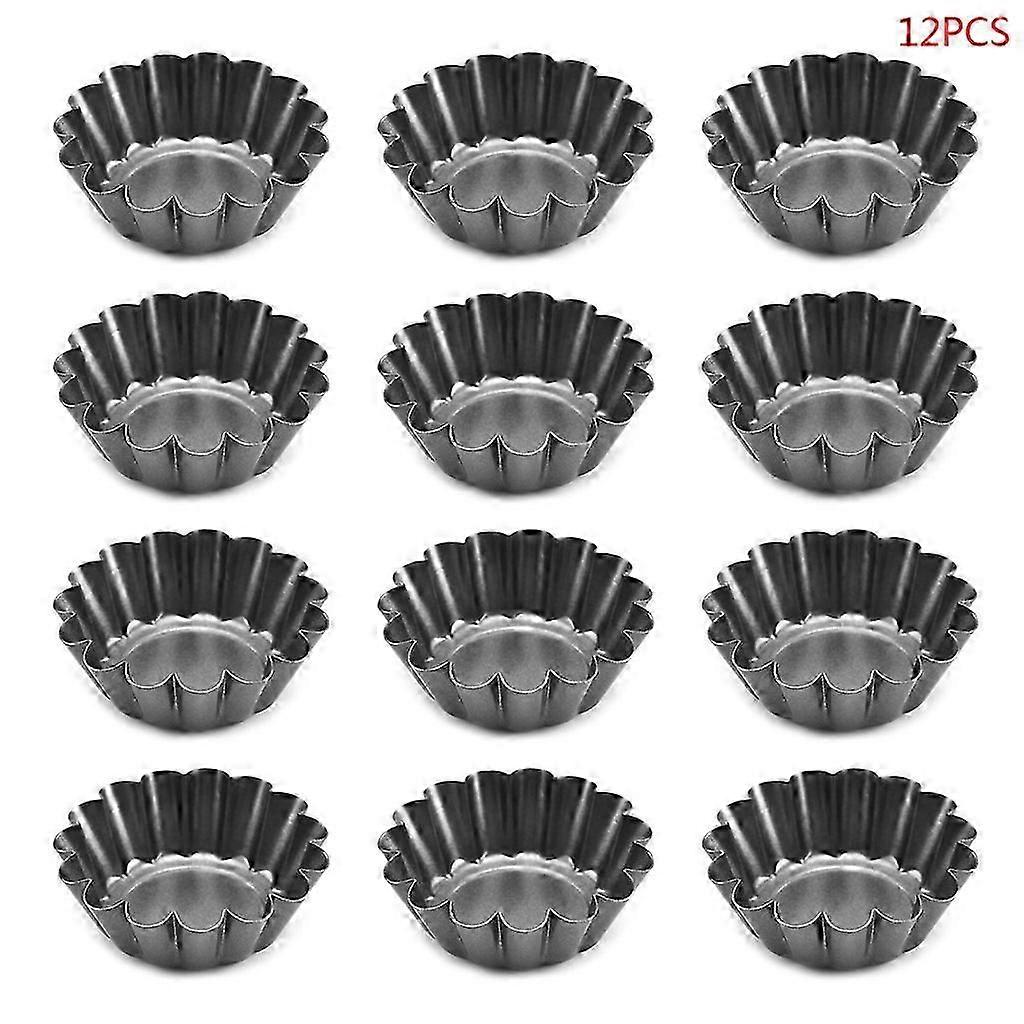 12 PCS Iron Baking Mold Flat-bottomed Chrysanthemum Pudding Mold Egg Tart Molds