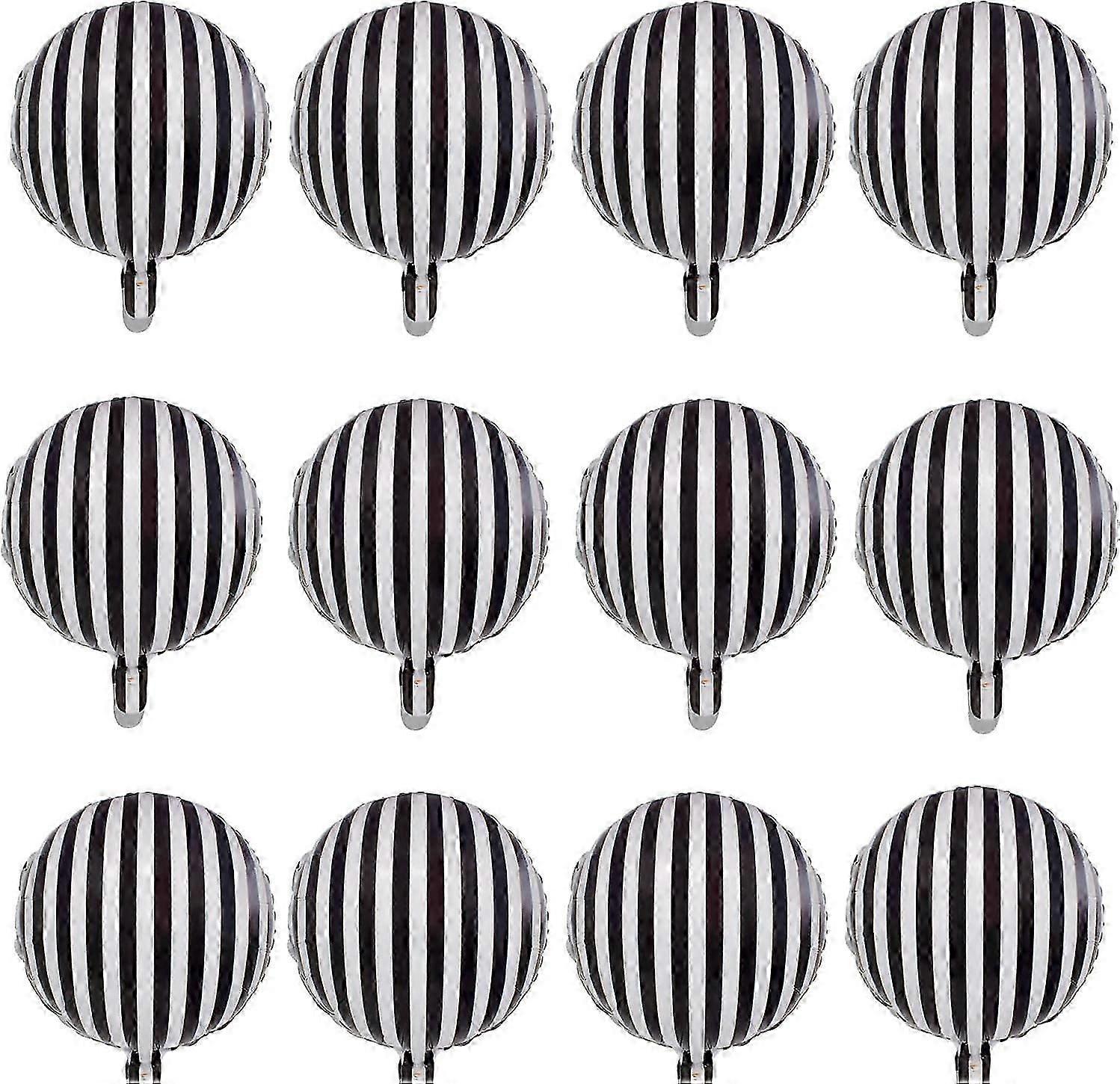 12 Pcs Black and White Striped Balloons Foil Mylar Balloons for Parties & Decorations