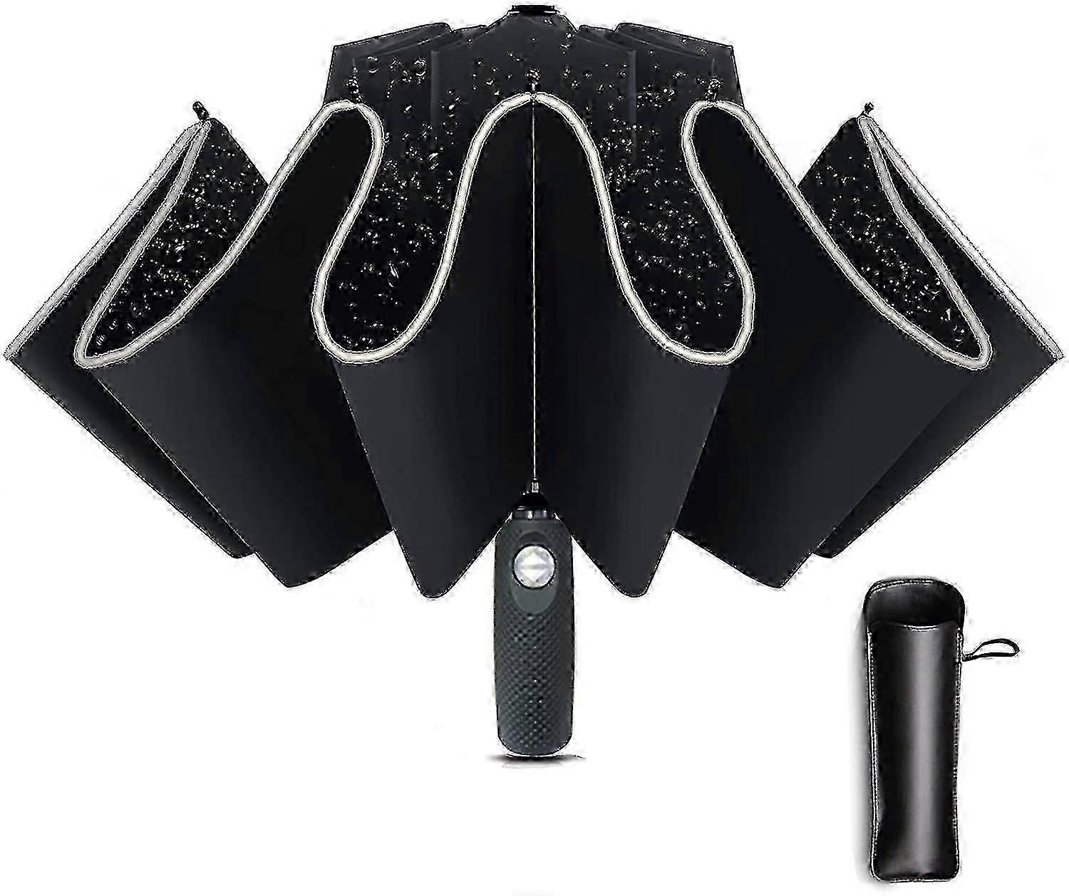 12-Rib Inverted Windproof Travel Umbrella with Reflection - Reverse Folding Design
