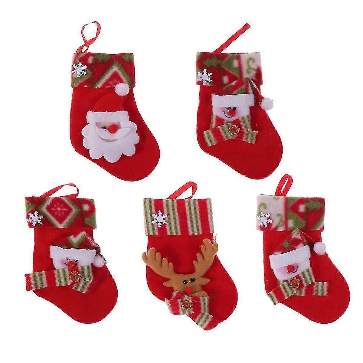 Cute Mini Stocking Hanging Decoration For Christmas Party Supplies Red Fabric present Bag 12Pcs