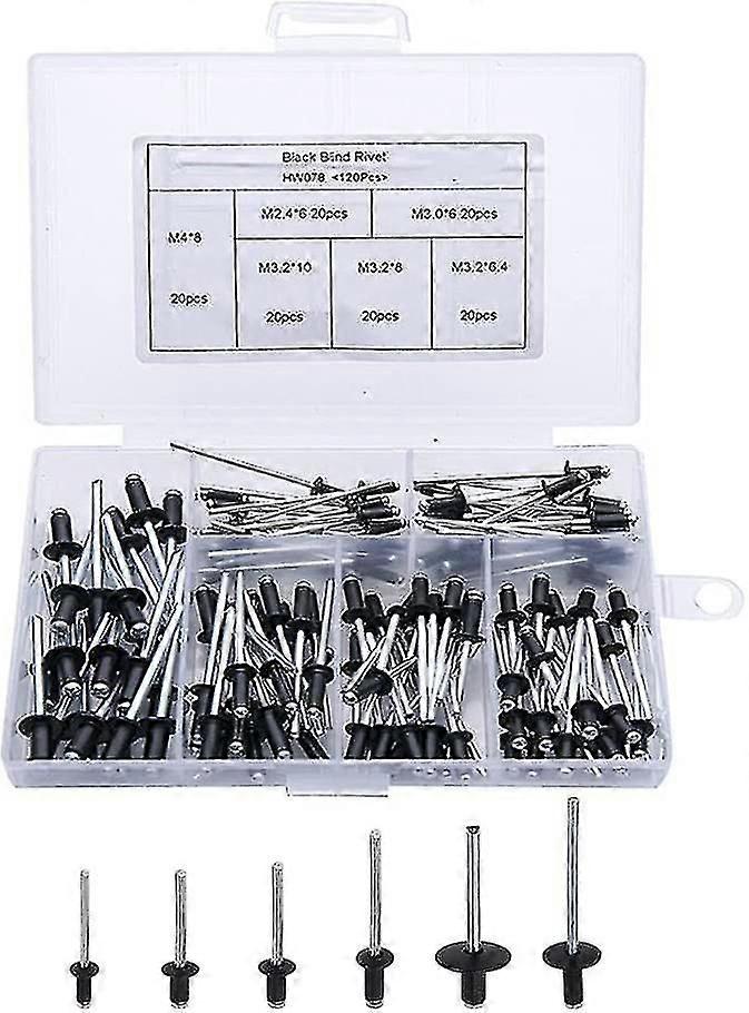120 Pieces Black Rivet Pop Rivet Aluminum Blind Rivets Aluminum Flange Rivets Large Head Rivets Black Pop Rivets for Furniture Matching Kit M2.4 M3.0