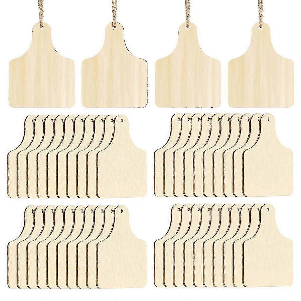 120 Pieces Wooden Cow Ear Tags Unfinished Wood Hanging Cow Tags With Ropes For Diy Craft Christmas