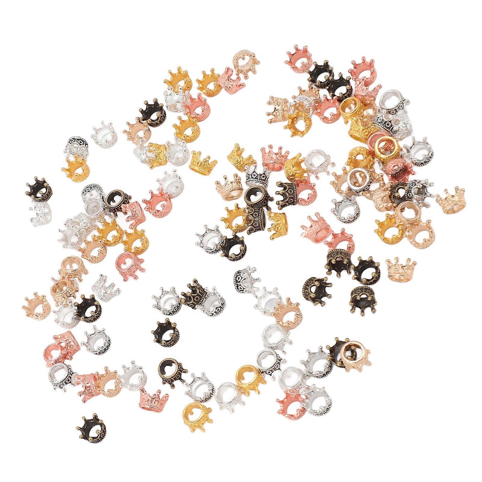 120Pcs Beard Beads Alloy Mini Crown Shaped Vintage Tibetan Style Braiding Beads for Hair DIY Jewelry Making