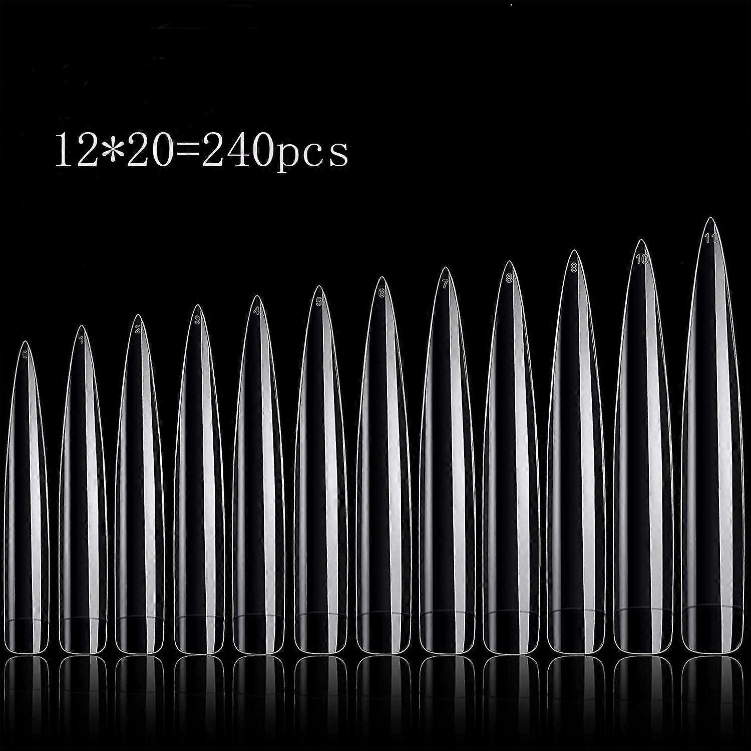120 Pcs Oval Stiletto Nail Tips - Long Clear Half Cover False Nail Art Tips