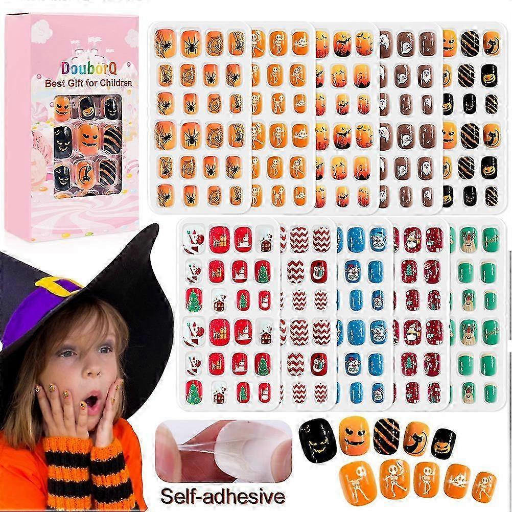 120Pcs Halloween Christmas Kids False Nails Pre Glue Full Cover Stick On Nails Press On Nails for Girls