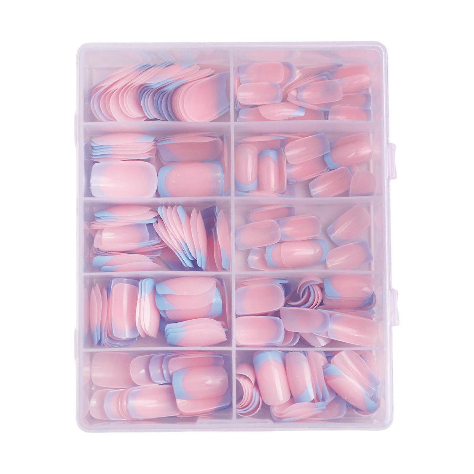 120 Pcs Press On Nails Blue French Tip False Nails Full Cover Stick on Nails Artificial Fingernails Manicures Supplies
