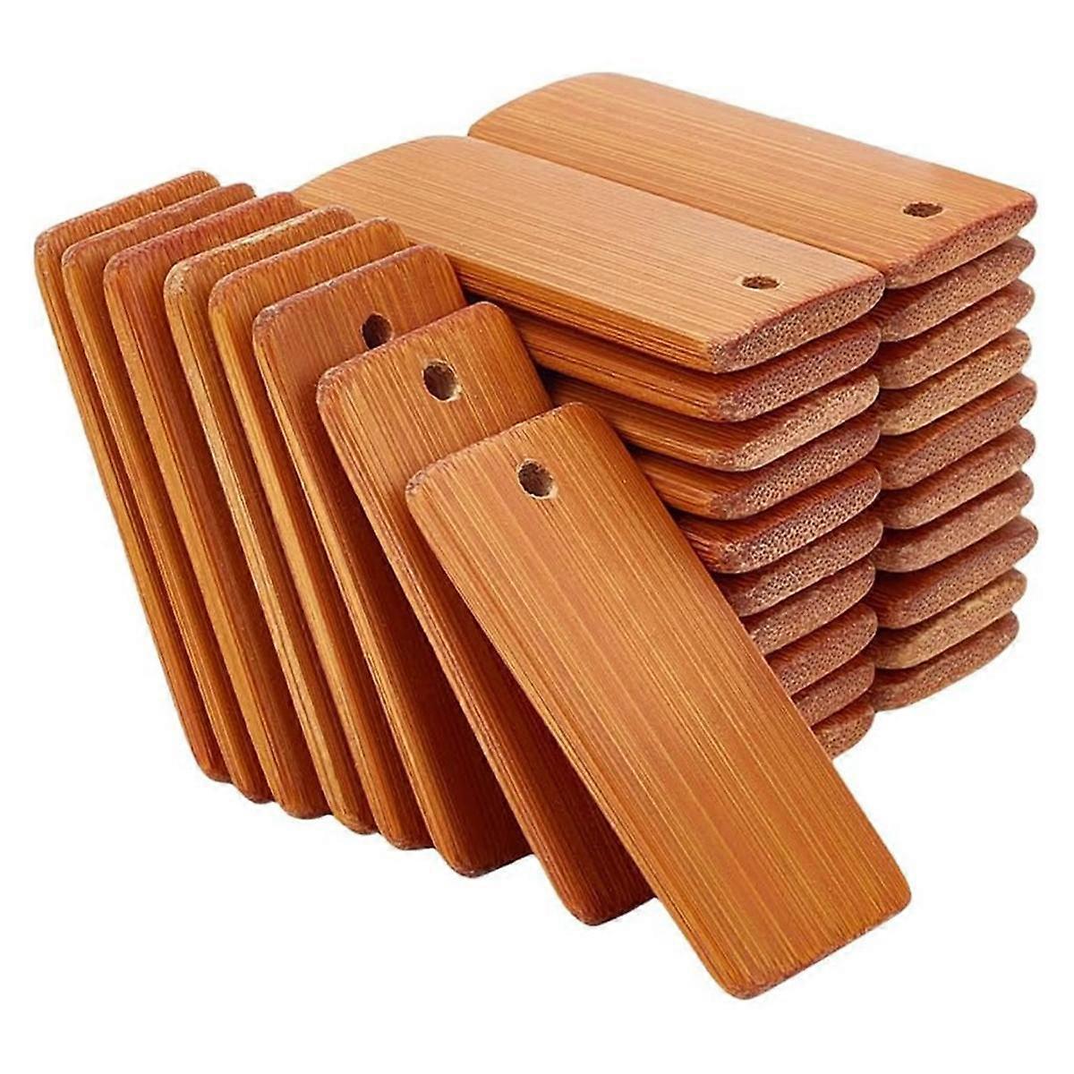 120PCS Wooden Tags Key Ring Blanks Rectangle Engraving Blanks Natural Wood Key Ring Tag for Keychain Wine Bottle