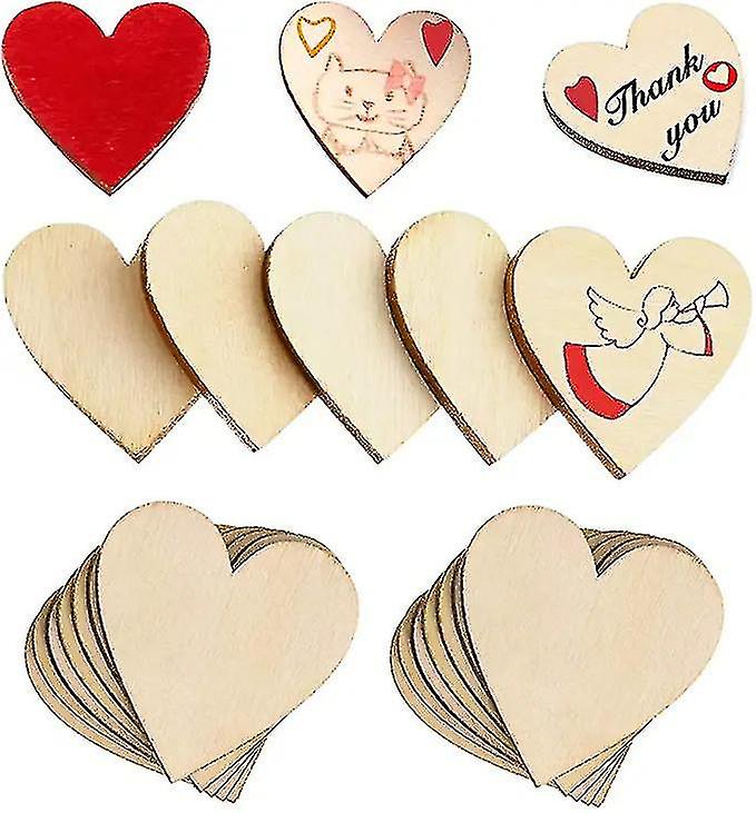 120 Pcs Mini Rustic Wooden Love Heart Wedding Table Scatter Natural Wood Heart Crafts Children's Diy Manual Patch Home Decorations