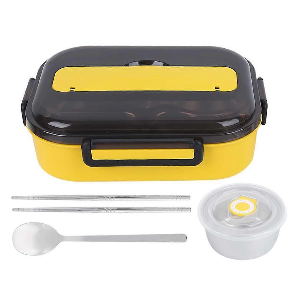 1200ml Portable Stainless Steel Lunch Box with Compartments, Bento Box, Leakproof Food Container with Utensils, Yellow