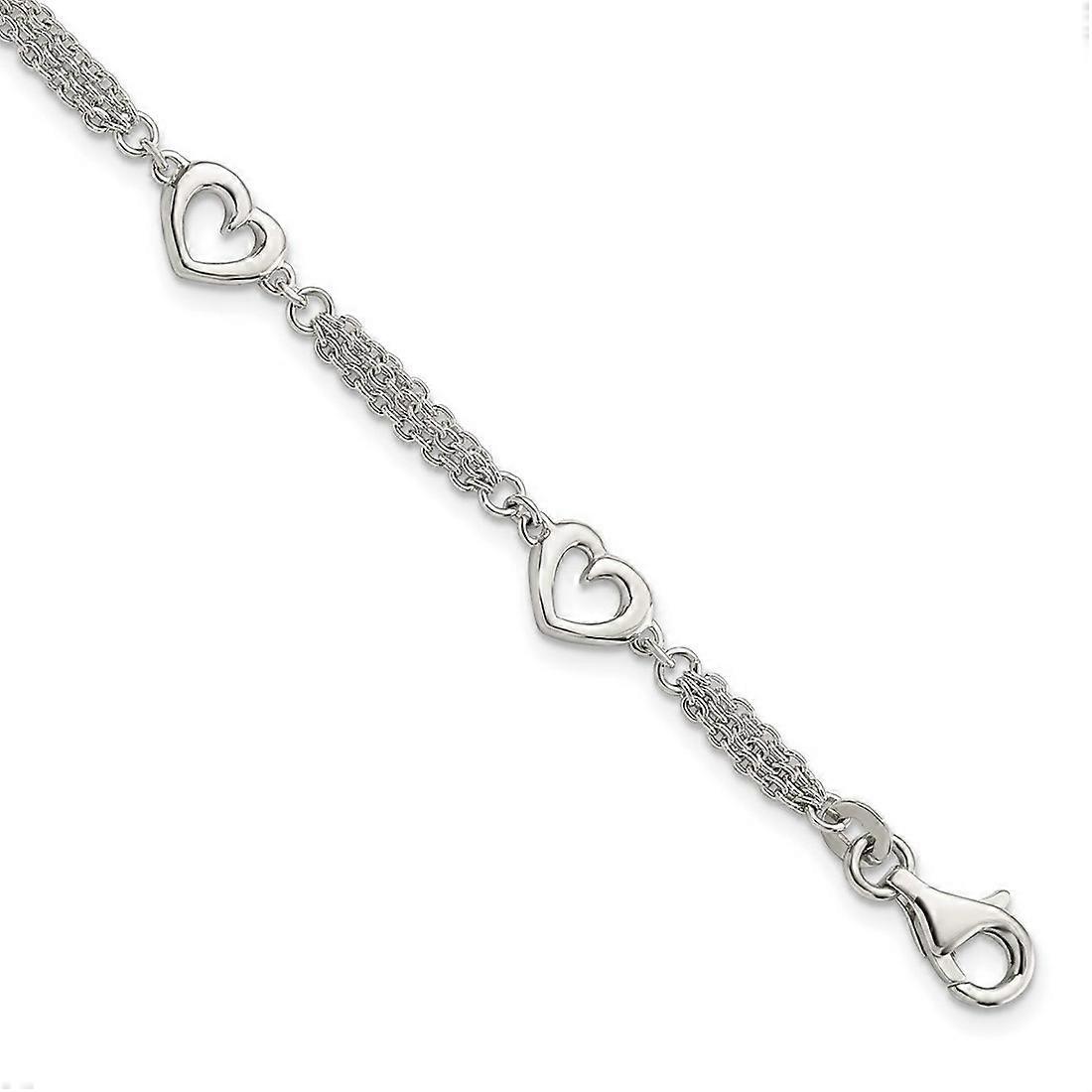 12.04mm 925 Sterling Silver Polished Love Hearts With 1.0 In Extension Bracelet 7.5 Inch Link-Bracelet for Women