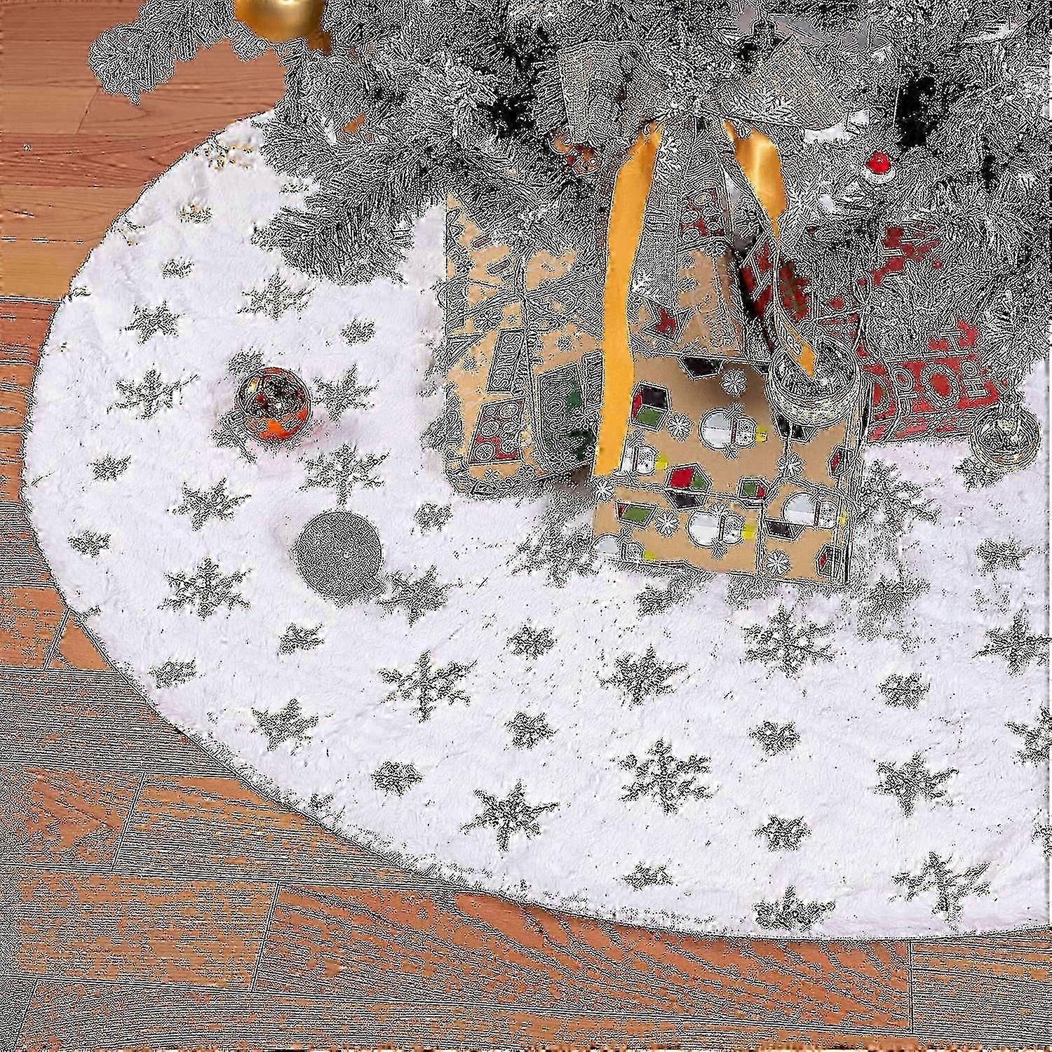 120cm Christmas Tree Skirt, Christmas Tree Mat With Gold Glitter Snowflakes Christmas Decoration, Christmas Tree Decoration