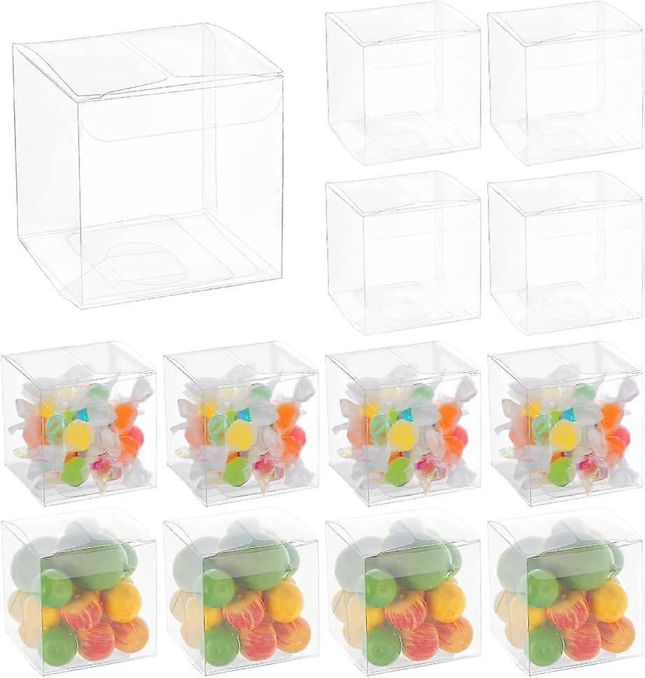 120pcs Clear Plastic Favor Box 2.4x2.4x2.4 Inches Gift Packing Box for Candy Choclate and Dessert Wedding Party Treats Valentine's Day Festival Gift P