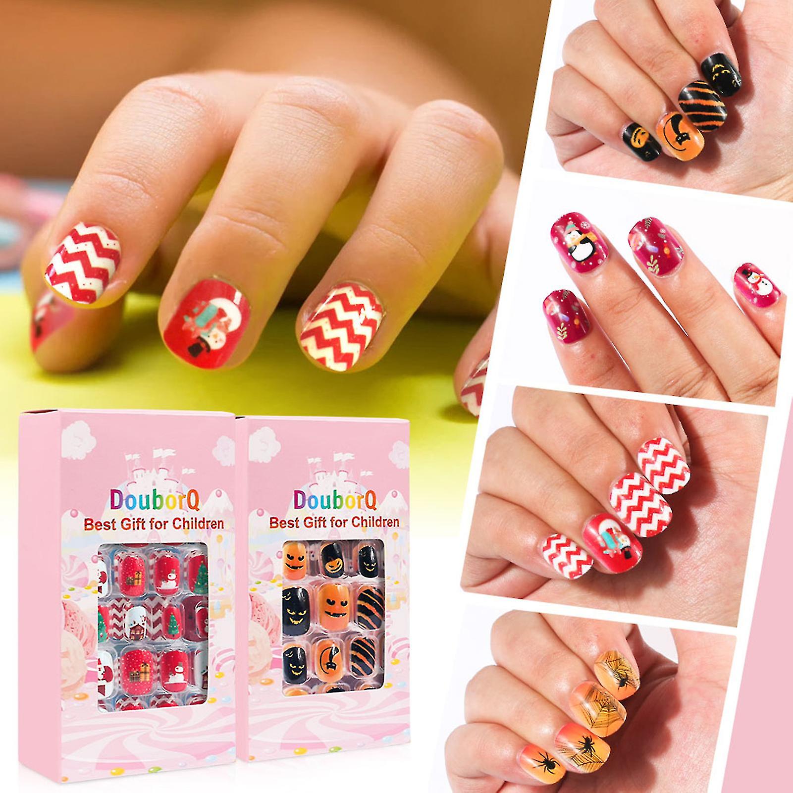 The 120pcs nail tips are specially for children, cute pattern, self-adhesive design, easy to apply and remove. It can help you create beautiful art nails easily and quickly. A variety of patterns can meet all your needs and bring more surprise for you.Features:Cute pattern design, specially for children.Self-adhesive design, press on style, safer the nail glue.Easy to apply and remove, no harm for nails.A variety of patterns to meet your needs.Perfect gift for your children.Help you to create beautiful DIY nail art design at home without visiting a salon.Specifications:Pattern: Halloween pattern, Christmas pattern (optional)Item Size: Please refer to the picture.Package Weight: 56g / 1.98ouncesPackage Size: 116 * 65 * 35mm / 4.57 * 2.2 * 2.56 * 1.38inPacking List:120 * Nail Tips