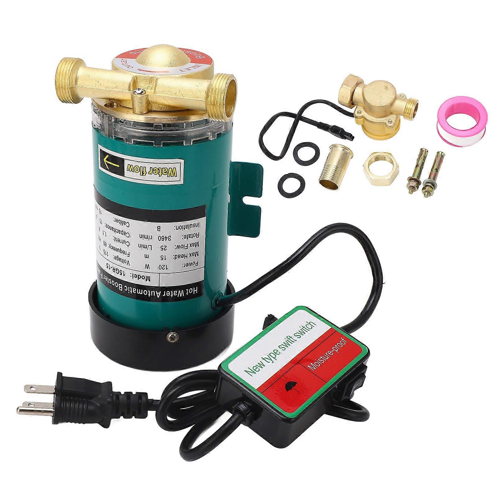 Enhance your water pressure system with our Automatic Water Pressure Booster Pump, featuring a robust 120W motor designed to effectively increase water pressure in low-pressure pipelines. This pump is ideal for duplex apartments, suburban villas, water heaters, and solar water heaters, delivering consistent and reliable water flow to meet your household needs. Key Features: · Powerful 120W Motor: Provides strong and efficient water pressure boosting, ensuring consistent flow even in low-pressure systems. · Automatic Water Flow Switch: Automatically adjusts water pressure according to demand, maintaining steady pressure in your water tank while operating quietly and energy-efficiently without leakage. · Durable Construction: Built with a brass pump body and impeller, stainless steel shaft, and high-quality materials for enhanced stability, corrosion resistance, and long-term durability. · Efficient Cooling System: Equipped with a high-efficiency cooling fan to dissipate heat effectively, prolong motor life, and improve overall pump performance. · Easy Installation: Comes with a sturdy base and convenient mounting holes for secure and stable installation on floors or walls, simplifying setup in various locations. Specifications: · Item Type: Automatic Water Pressure Booster Pump · Material: Brass, ABS, Stainless Steel, Rubber · Rated Power: 120W · Frequency: 60Hz · Current: 1.1A · Head: Approx. 15m (49.21ft) · Maximum Flow Rate: 25L/min · Speed: 3460r/min · Insulation Level: B · Pipe Diameter: Approx. 15mm (0.59in) · Thread Specification: Approx. 25mm (1in) Package Includes: · 1 x Automatic Water Pressure Booster Pump This water pressure booster pump offers a reliable and efficient solution to low water pressure problems, combining powerful motor performance with durable materials and smart automatic operation. Its versatile design and easy installation make it perfect for improving water pressure in residential settings, ensuring steady and optimized water supply at all times.