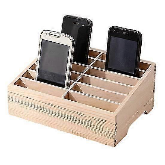 12/16Grids Wooden Cell Phone Holder Eco-Friendly Free Standing Design Desktop Organizer Phone Display Rack Storage Box
