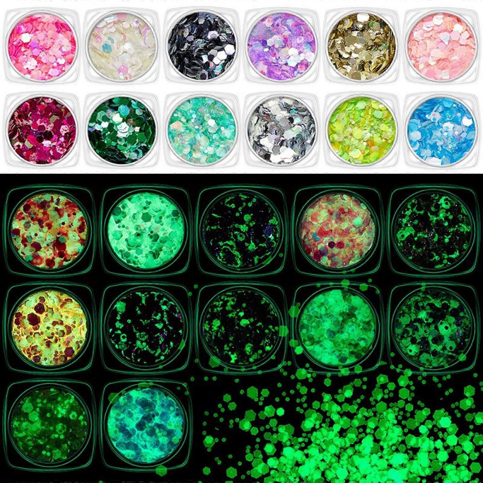 Features: brand new and high quality brand new and high quality Luminous nail sequins: This luminous nail art glitter shines in the dark, making you more attractive. Various shapes of sequins and unique luminous features will make you shine more in the dark! High-quality nail art glitter: made of high-quality environmentally friendly plastic, safe, non-toxic and durable. Our luminous nail sequins can be safely worn on the skin and used safely. Application: Luminous nail sequins can be used for nail art decoration and body glitter, and can also be used for decorating pictures, mobile phone cases, home decoration, birthday cards, DIY crafts, resin art crafts, etc. Put the glowing nail art sequins in the sun for a long time, and the glow effect will be longer in the dark. This is the perfect gift for a girlfriend. Package Includes: Package 1 Includes: 12 Boxesx Sequins A Package 2 Includes: 12 Boxesx Sequins B Package 3 Includes: 18 Boxesx Sequins Package 4 Includes: 24 Boxesx Sequins Specifications: Color: Multicolor Material: Sequins Box:Approx.28.4x28.4x12.4mm/1.12x1.12x0.49in Quantity:1 Set note: Please allow a little error on the size due to manual measurement. The color might exist slightly difference due to different displays.