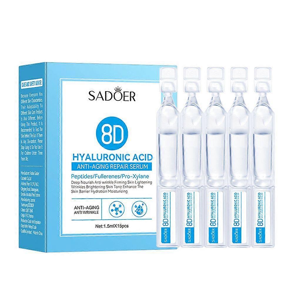 Restore Your Radiant Skin Introducing our hyaluronic acid serum for face, for achieving a youthful and radiant complexion! This hydraulic acid serum for face is perfect for those looking to boost their skin's hydration levels while reducing the appearance of fine lines and wrinkles. Hydrating & Even Skin Tone The microneedling serum for face comes in 1.5ML * 15 bottles that can deeply moisturize skin and improve texture and brightness, resulting in a youthful and radiant look, deeply hydrate and nourish the skin, leaving it feeling soft and supple. Repair and Renewal The face serum hyaluronic acid is designed to regenerate and repair skin cells, reducing the appearance of fine lines, wrinkles, dark spots, and hyperpigmentation. It is a must-have in your daily skincare routine for a healthy, glowing, and youthful skin. Perfect For All Skin Types Our hyaluronic serum contains 98% natural and 72% organic ingredients, without any alcohol or parabens. Perfect for anti-aging and anti-wrinkle serum that won't cause redness, irritation, or oiliness. Lightweight, non-greasy texture that quickly absorbs into the skin. Unique Convenient Design Our microneedling serum for face unique designed that with 1.5ml * 15 PCS. Every time you use it, just unscrew a single one and apply it evenly on your face for absorption. Perfect for traveling and on-the-go, convenient and easy to use and carry.