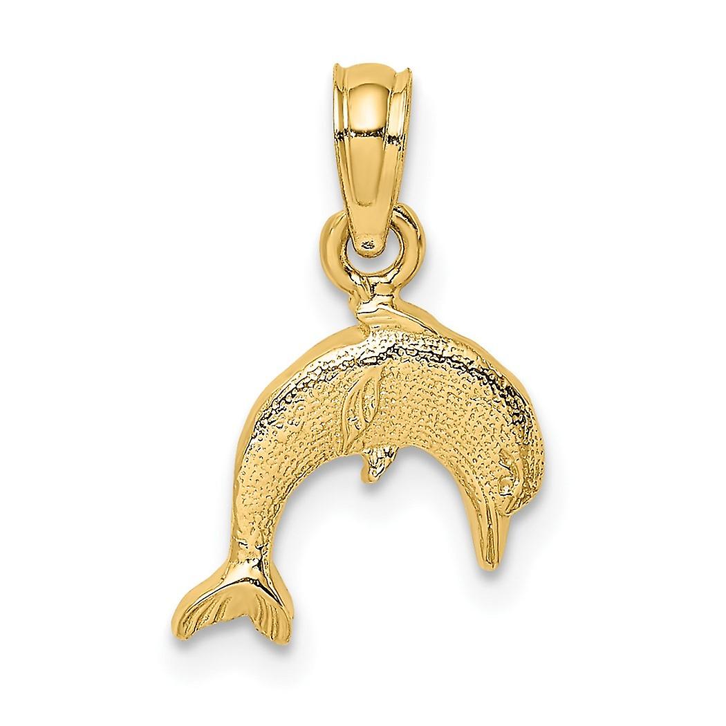 12.35mm 10k Solid Yellow Gold Textured Mini Dolphin Jumping Charm Pendant Necklace for Women