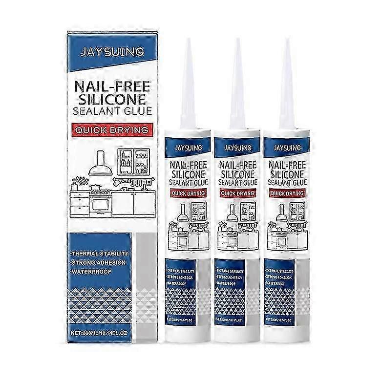 Name: Nail-free Silicone Sealant Specification: 300g Efficacy: Suitable For Quick Repair, Maintains Elasticity After Curing Features: 1. It Can Cure Quickly Underwater, Suitable For Quick Repairs, And Maintains Elasticity After Curing 2. Not Affected By Temperature, Will Not Crack, Stretch Or Change Color 3. Transparent And Colorless After Construction, With Excellent Waterproof Effect 4. Transparent Waterproof Glue Can Be Used In The Bathroom 5. It Is A New Waterproof Adhesive That Is Green, Environmentally Friendly, Has A Long Service Life, And Has Good Waterproof And Mildew-proof Effects. Package Included: 1-3pcs*(1 Glue)