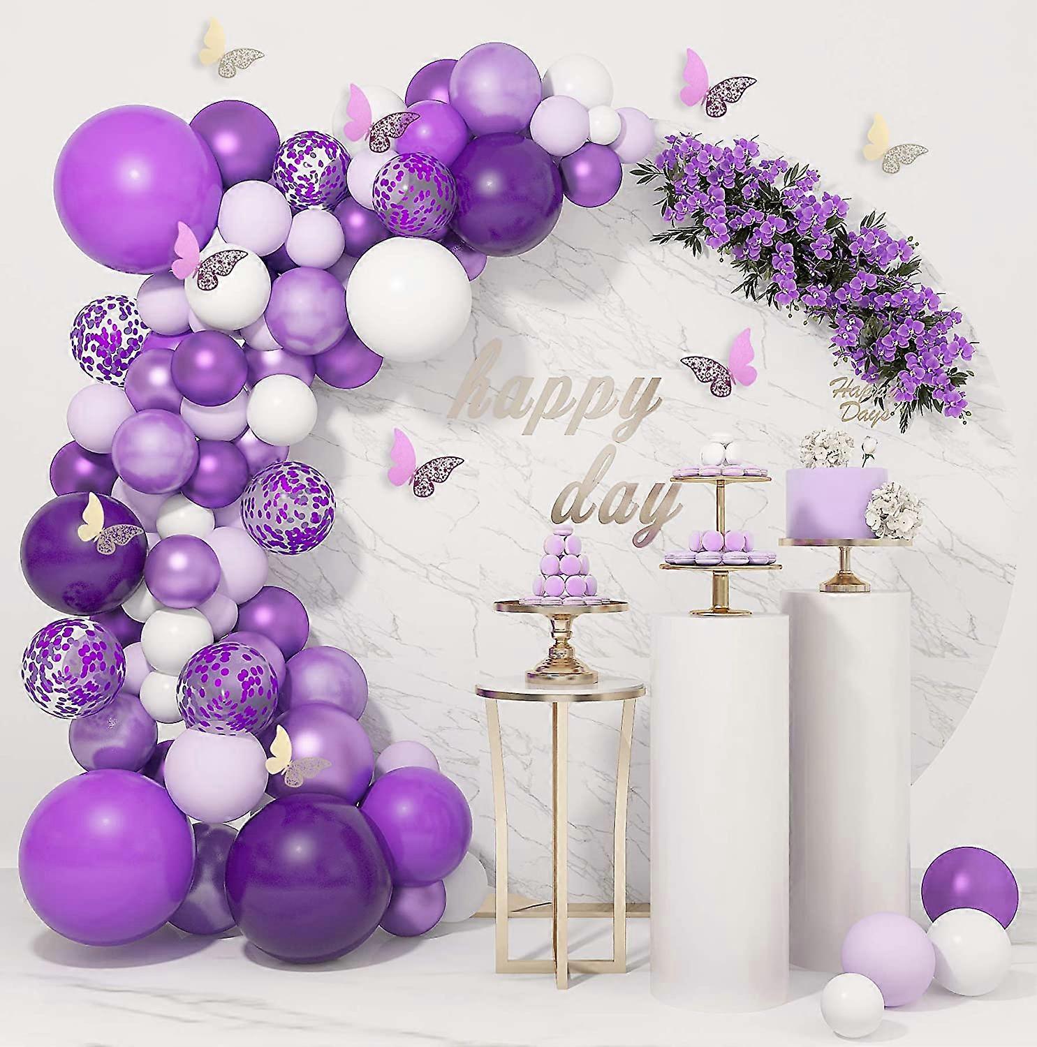 124Pcs Purple Balloons Garland Arch Kit White Purple Confetti Latex Metallic Balloons with Paper Butterfly for Baby Shower Wedding Engagement Purple B