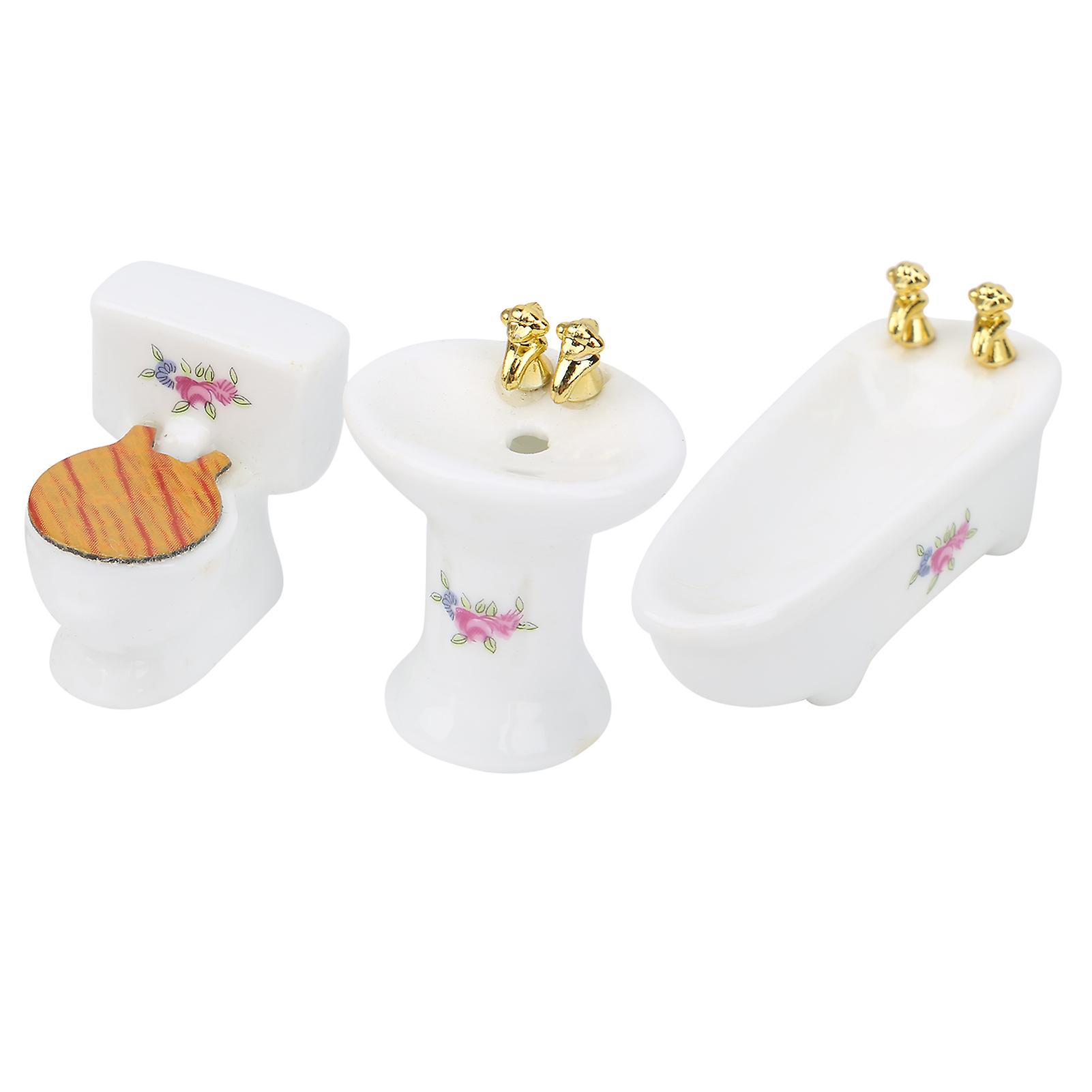1/24 Dollhouse Miniature Bathroom Set Simulation Ceramic Bathtub Toilet Sink KitRose
