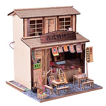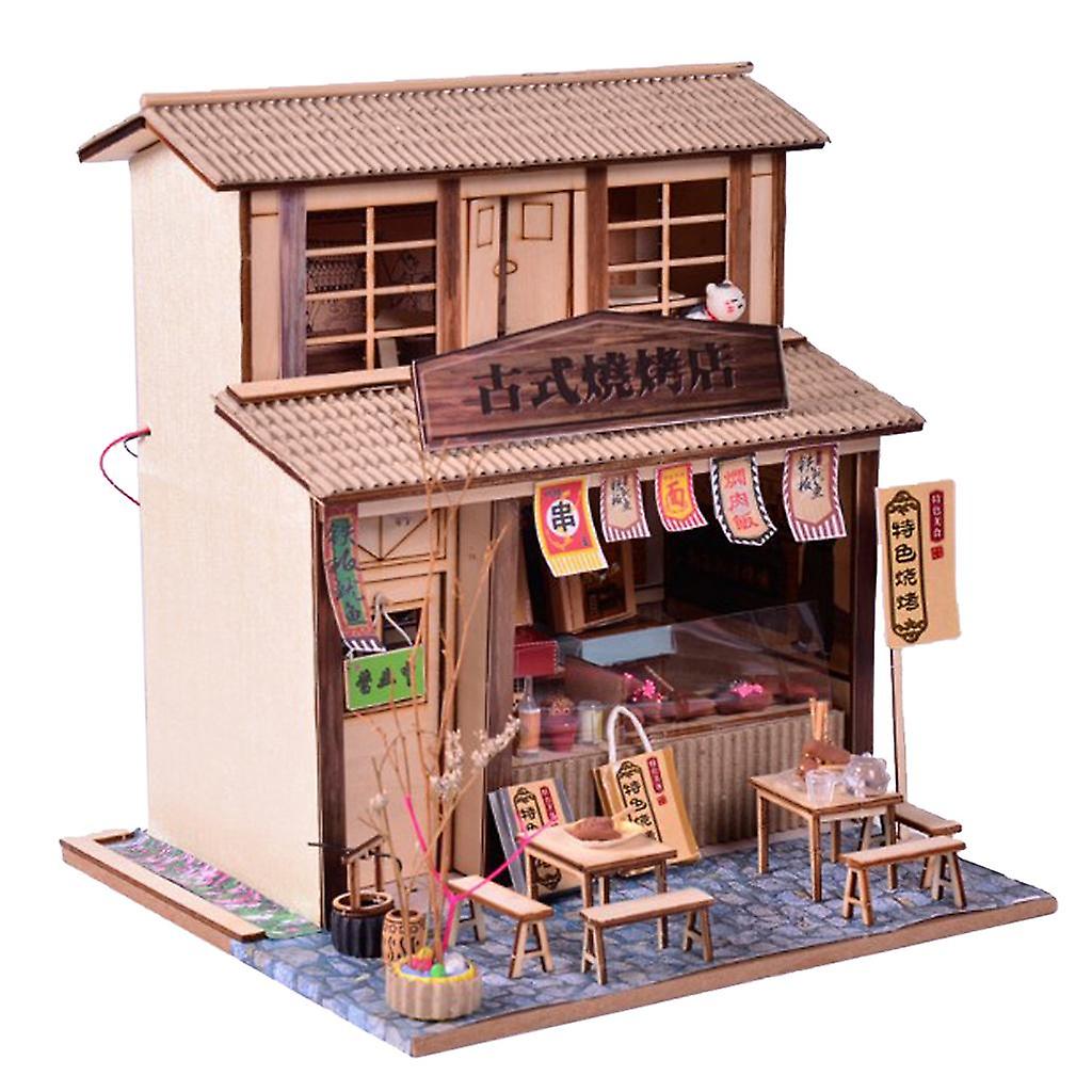 1/24 DIY Dollhouse Miniature Kit with Furniture, Light BBQ Restaurant Gift