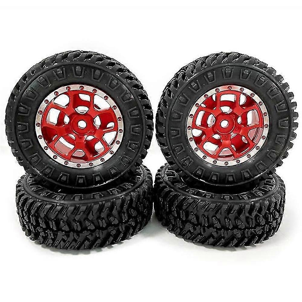 4pcs 1.0 Tires And Metal Beadlock Wheel Rims Set For 1/24 Rc Crawler Car Axial Scx24 Fcx24 Enduro24 Parts,red A