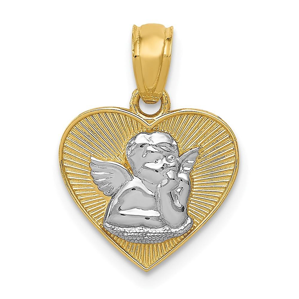 12.58mm 14k With Rhodium Polished Guardian Angel In Love Heart Pendant Necklace-Pendant for Women