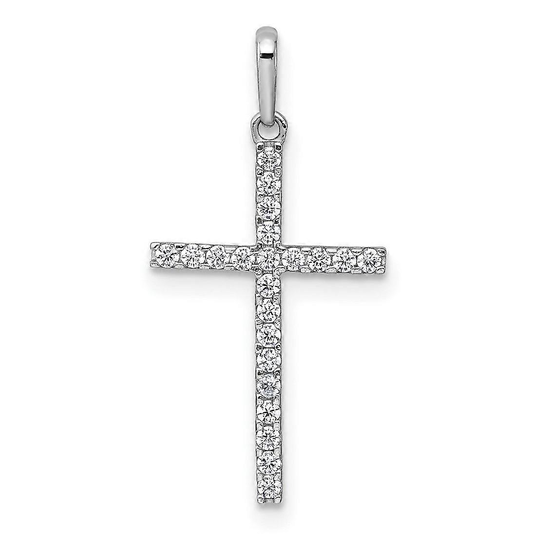 12.6mm 14k White Gold Polished Cubic Zirconia Religious Faith Cross Pendant Necklace-Pendant for Women