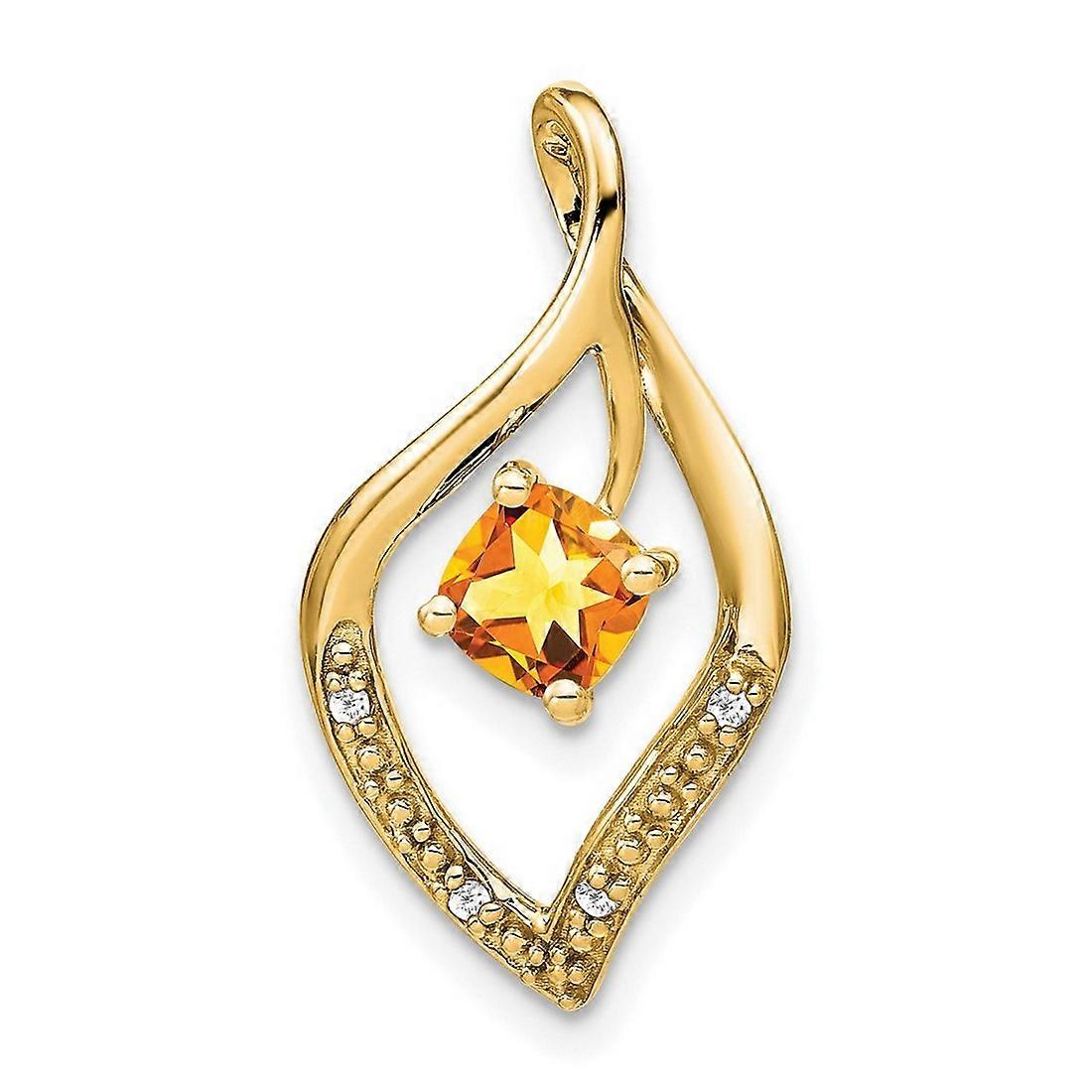 12.75mm 14k Solid Yellow Gold Citrine and Diamond Pendant Necklace-Pendant for Women