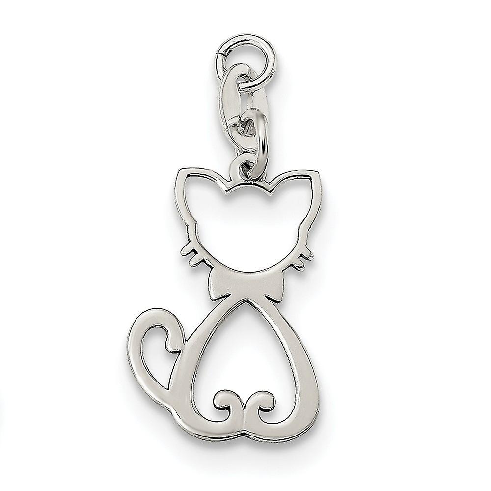 12.8mm 925 Sterling Silver Polished Cat Charm Pendant Necklace for Women - .6 Grams