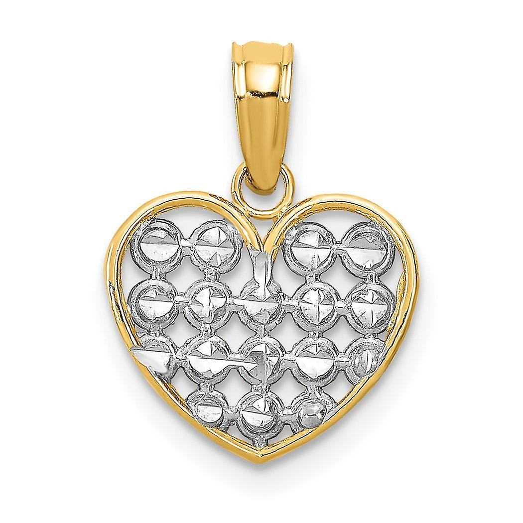 12.8mm 10k With Rhodium Sparkle-Cut Heart Charm - .6 Grams In 10k Yellow Gold - - Charm/Element Width: 12.8 mm - Width of Item: 12.8 mm - Charm/Element Length: 11.93 mm - Length of Item: 15.93 mm - Bail Length: 5 mm - Bail Width: 4.5 mm - Finish: Polished - Feature: Solid - - This Item Does Not Ship With a Chain