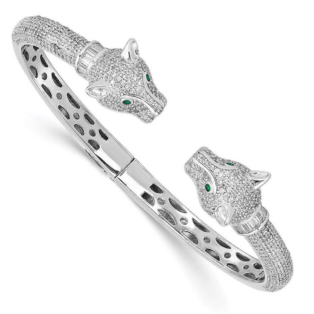 12.8mm 925 Sterling Silver Rhodium Plated Polished Cubic Zirconia Lioness Hinged Cuff Stackable Bangle Bracelet-Cuff-Bra