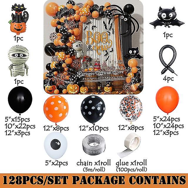 128pcs Diy Orange Black Halloween Balloon Garland Arch Black Cat Bat Pumpkin Mummy Foil Balloons Halloween Boo Party Decorations