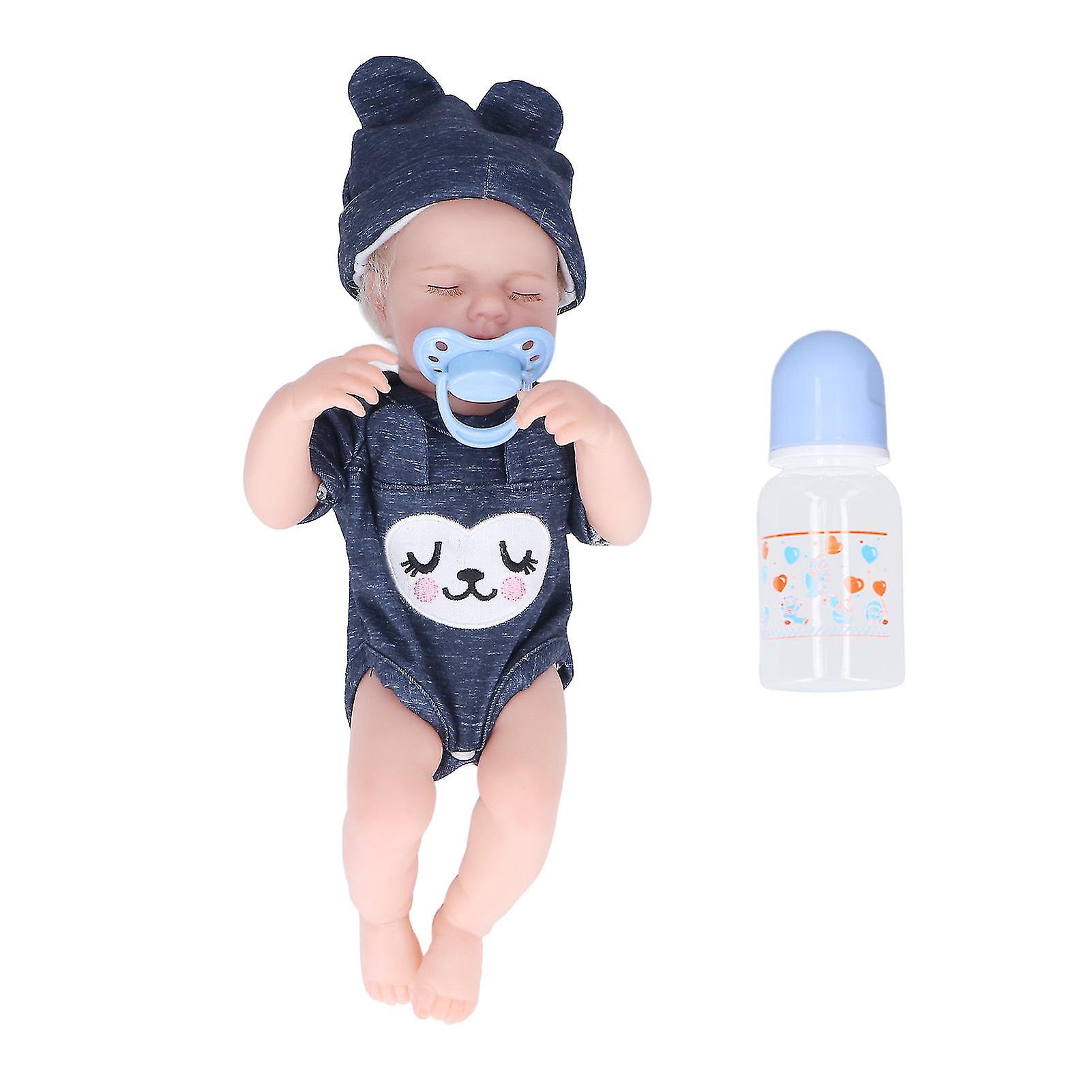 12in Newborn Baby Doll Set Washable Emulational Soft Silicone Sleeping Baby Boy Doll with Clothes Feeding Bottle Nipple