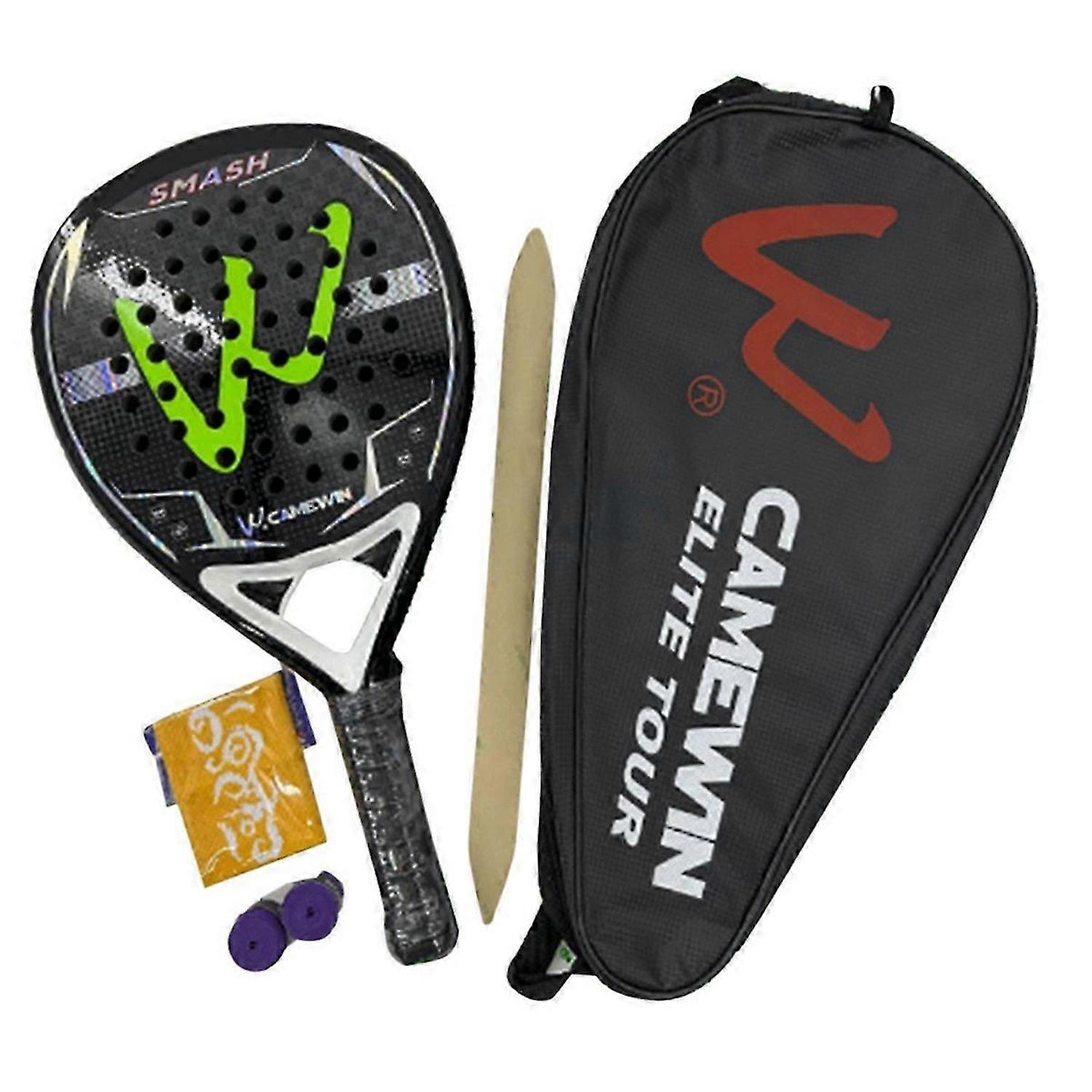 The 4042 Beach Tennis Racket is crafted using high-quality 12K material, providing exceptional performance and durability. Designed specifically for professionals, this padel uses high-quality EVA memory foam, so you can easily maneuver it on the court. Like rackets, the racket features a carbon fiber woven construction for greater toughness and durability. The power of graphite increases the power of the racket. Another feature of the racket is precision drilling in spot for more bite on every shot. This aerodynamic hole pattern is found on most intermediate and professional beach tennis racquets<br><br>Material: carbon fiber Color: as shown<br><br>Package Contents: 1 x racket 1 x ball bag 1 x racket accessories (see accessory diagram)<br><br>Only the above package content, other products are not included. Note: Light reflection and different displays may cause the color of the item in the picture a little different from the real thing. The measurement allowed error is +/- 1-3cm.