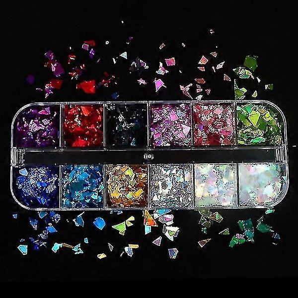 12LSSP Holographic Nail Art Glitter 3d Colorful Flakes