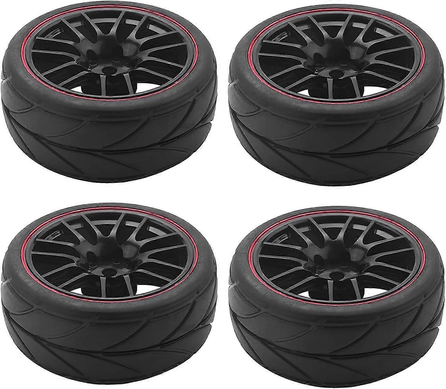 12mm Hub Wheel Rims & Rubber Tires For RC 1/10 On-Road Touring Drift Car Rblack&red)(4pcs)